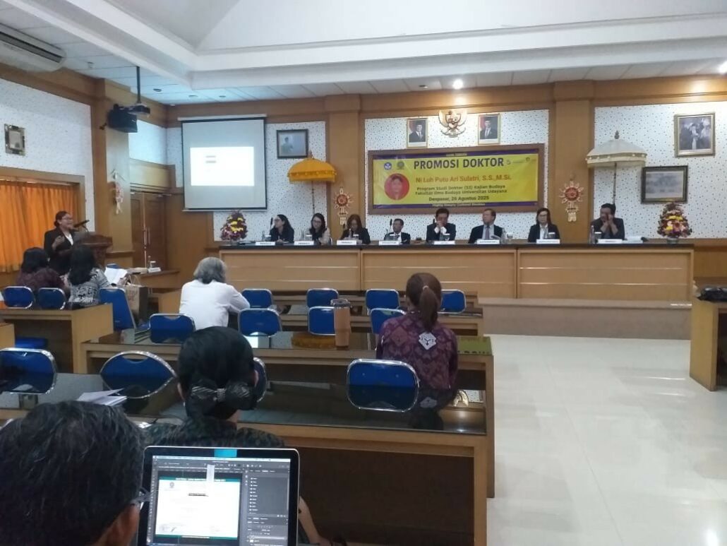 Dr. Kadek Eva Krishna Adnyani, S.S., M.Si., dosen Program Studi Pendidikan Bahasa Jepang Undiksha, berkesempatan menjadi penguji eksternal pada ujian terbuka promosi doktor Ni Luh Putu Ari Sulatri, dosen Sastra Jepang Fakultas Ilmu Budaya Universitas Udayana. Ujian berlangsung pada Selasa (26/8/2025) di Ruang Dr. Ir. Soekarno, Kampus Universitas Udayana.